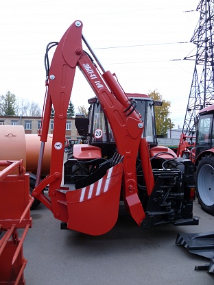 Навесной экскаватор-бульдозер-погрузчик со смещаемой осью копания устанавливается на трактор БЕЛАРУС для выполнения погрузочных, земляных и коммунальных работ. Техника оснащена вставной опорой для зашиты от опрокидывания, имеет увеличенную мощность гидроцилиндра, отличается долгим скором эксплуатации. Возможно оснащение любым видом навесного оборудования.